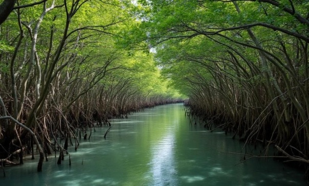 درختان جنگل های حرا در آبهای شور دریا رشد کردهاند. ریشههای درهمتنیده درختان جنگل حرا به شوری آب مقاوماند و نمک را از برگهای خود خارج میکنند.